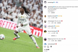 他也在赛后通过社媒晒出自己的比赛照,并配文:“历经五个月艰难时光,很开心终于重新踏上世界最佳球场的草皮——且收获胜利。皇马加油🤍”